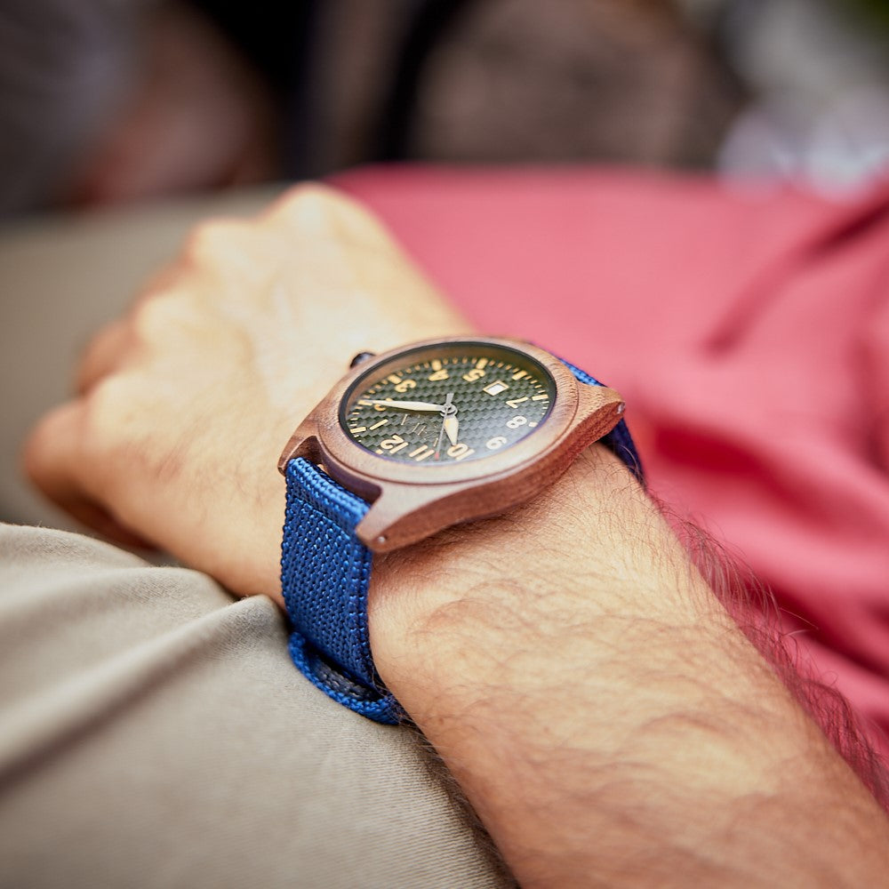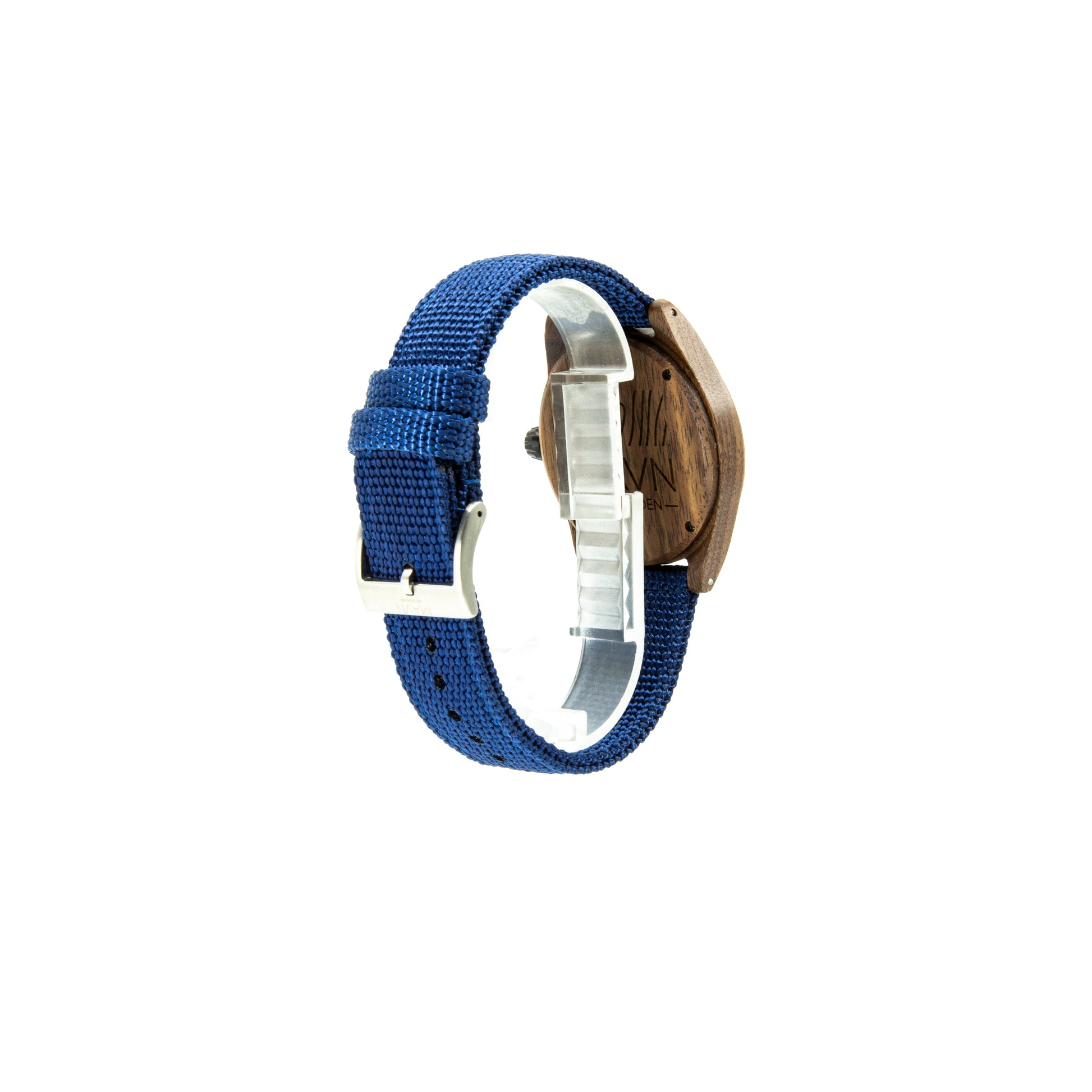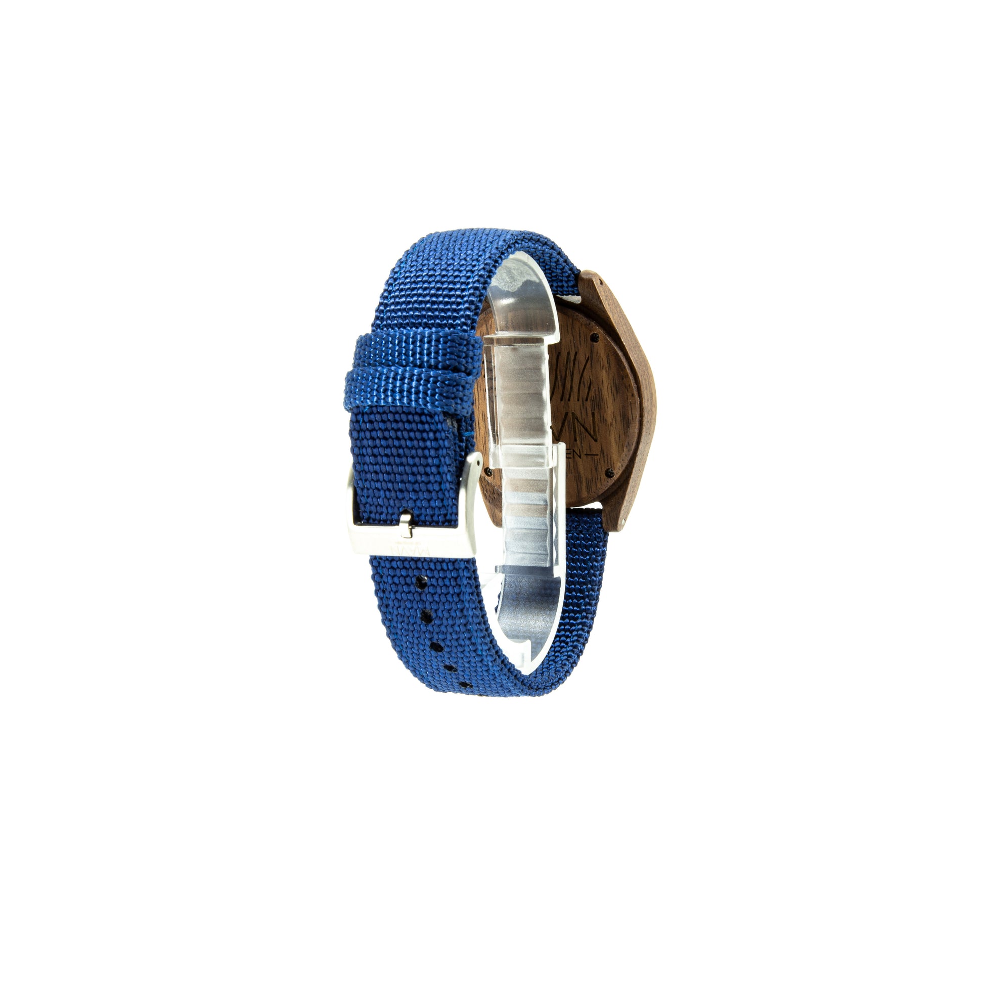 - Det blå nylonbandet ger både komfort och stil – perfekt för vardag och fritid.