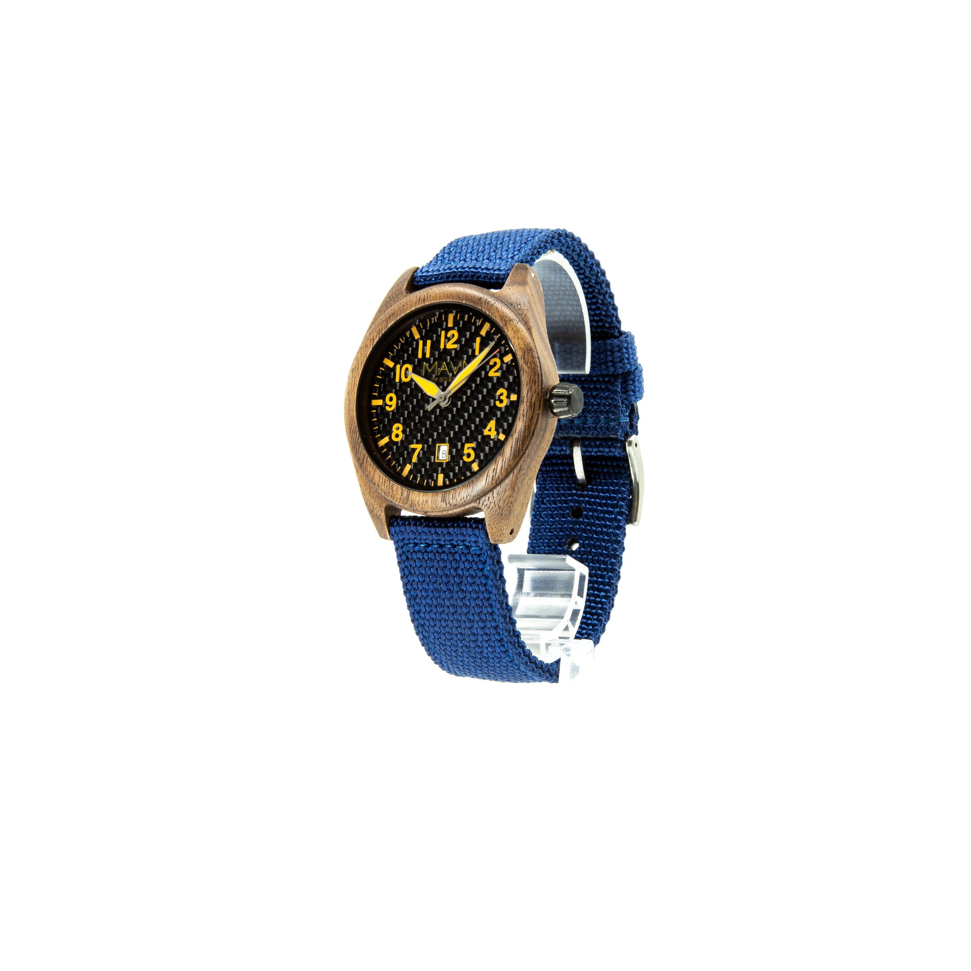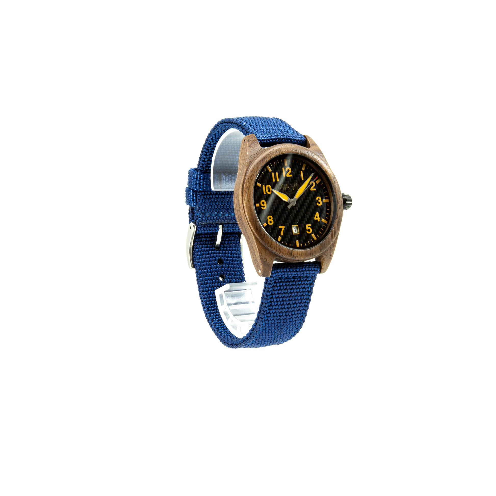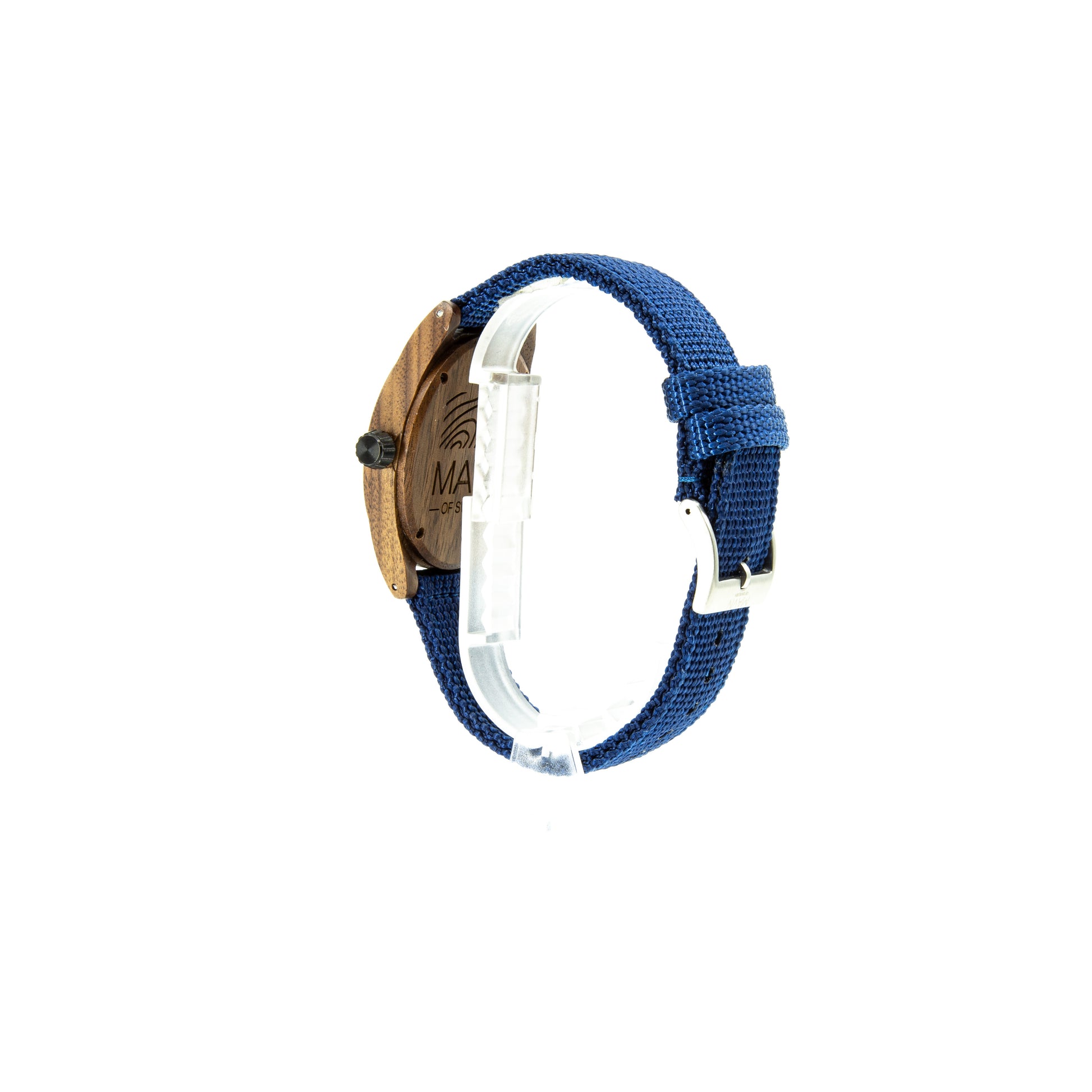 - Det blå nylonbandet ger både komfort och stil – perfekt för vardag och fritid.